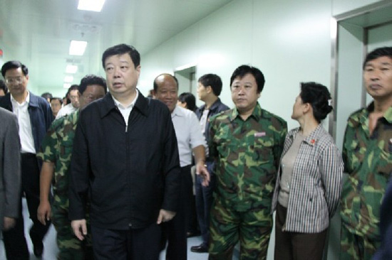 2010年9月25日,由集團公司援建的北川羌族自治縣人民醫(yī)院正式掛牌投入使用。在簡短的開業(yè)儀式之后,中共山東省委書記、省人大主任姜異康參觀、視察了人民醫(yī)院工程建設(shè)情況,集團公司總經(jīng)理朱九洲、副總經(jīng)理閆鵬、援川指揮部總指揮孫孔喜等陪同。在參觀、視察過程中,姜異康書記對濰坊和昌大的援建工作給予了充分肯定,并代表省委、省政府對全體援建人員表示感謝和親切慰問。參觀、視察結(jié)束后,援建人員齊唱“濰坊援建之歌”,獻給山東的親人。 ![]() 總經(jīng)理朱九洲(右三)陪同省委書記姜異康視察援建北川人民醫(yī)院