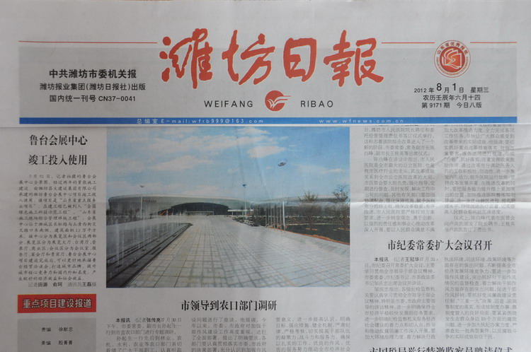 7月31日,經(jīng)過兩年的緊張施工建設,由濰坊昌大建設集團有限公司承建的濰坊魯臺會展中心項目竣工投入使用。該項目是“山東省重點服務業(yè)項目”,在建工程已被列入“全國綠色施工科技示范工程”、“山東省施工現(xiàn)場綜合管理樣板工程”。會展中心位于濰城區(qū)長松路與玉清街交叉路口東南側(cè),建筑面積12萬平方米,該中心分為展覽區(qū)和會議區(qū)兩部分。 展覽區(qū)分為展覽大廳、臺灣廳、登錄廳、商業(yè)區(qū);會議區(qū)分為會議室、報告廳、宴會廳和貴賓廳。魯臺會展中心項目建設完成后,可以更好的承接魯臺經(jīng)貿(mào)洽談會,打造城市品牌、提升城市核心競爭力和國內(nèi)外知名度,產(chǎn)生較好的經(jīng)濟效益和社會效益。