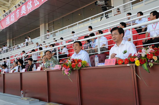 啟動(dòng)儀式上,濰坊千人太極拳表演隊(duì)、抖空竹表演隊(duì)、膠東秧歌隊(duì)和氣功表演隊(duì)表演了精彩的節(jié)目。3點(diǎn)30分,山東全運(yùn)男子足球隊(duì)與長(zhǎng)春亞泰男足進(jìn)行了比賽,標(biāo)志著體育場(chǎng)正式投入使用。 啟動(dòng)儀式由濰坊市人民政府副市長(zhǎng)劉偉主持并致辭,國(guó)家體育局、全運(yùn)會(huì)組委會(huì)、籌委會(huì)相關(guān)領(lǐng)導(dǎo)、濰坊市五大班子領(lǐng)導(dǎo)和黨政機(jī)關(guān)公務(wù)人員以及社會(huì)各界、團(tuán)體計(jì)3萬(wàn)多人參加了啟動(dòng)儀式。劉偉副市長(zhǎng)在致辭中,對(duì)昌大建設(shè)集團(tuán)在一年時(shí)間內(nèi)高標(biāo)準(zhǔn)建成這座現(xiàn)代化體育場(chǎng)給予了高度評(píng)價(jià),對(duì)昌大建設(shè)集團(tuán)對(duì)濰坊城市建設(shè)的突出貢獻(xiàn)給予高度贊揚(yáng)。 集團(tuán)公司全體高管層、中層以上人員,友好單位、合作單位代表及3000名員工方隊(duì)參加啟動(dòng)儀式,共同感受成功的快樂(lè),接受全市各界對(duì)昌大的祝福。在啟動(dòng)儀式當(dāng)天,雙顯200平方米的LED電子屏幕持續(xù)播放昌大人建設(shè)體育場(chǎng)記實(shí)性大型宣傳片《誠(chéng)信創(chuàng)偉業(yè),奇跡鑄輝煌》,贏得社會(huì)廣泛贊譽(yù)。 (09.06.10) |