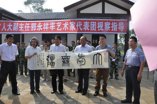 6月3日上午,四川省人大副主任郭永祥率藝術(shù)家代表團(tuán)赴北川新縣城慰問援建士。藝術(shù)家們或現(xiàn)場作畫,或引亢高歌,或與援川員工同臺表演,真誠表達(dá)他們對山東人民援川的感激之情。集團(tuán)公司援川員工還為藝術(shù)家代表團(tuán)合唱《援川之歌》。慰問演出前,郭永祥副主任還視察了集團(tuán)公司援建的安居房工程,藝術(shù)家們還實地參觀了新的安居房家居,看到漂亮、舒適的安居房,聽著援川人的感人事跡,藝術(shù)家們表達(dá)了對援川將士的由衷贊嘆,并再一次代表北川縣的受災(zāi)同胞對山東的援建表示真誠的謝意。 ![]() 圖為藝術(shù)家展示藝術(shù)作品