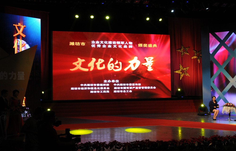 5月18日晚7時(shí)30分,由濰坊市委組織部、市委宣傳部、市經(jīng)信委、市國(guó)資委、市工商局、市總工會(huì)聯(lián)合主辦的“濰坊市企業(yè)文化建設(shè)領(lǐng)軍人物、優(yōu)秀企業(yè)文化品牌頒獎(jiǎng)盛典”在濰坊電視臺(tái)演播大廳隆重舉行。頒獎(jiǎng)活動(dòng)以《文化的力量》為主題,采用獲獎(jiǎng)單位和個(gè)人登臺(tái)接受頒獎(jiǎng)、專家訪談、文藝節(jié)目等形式交替進(jìn)行。集團(tuán)公司“昌大建設(shè)”文化品牌獲濰坊市優(yōu)秀企業(yè)文化品牌;董事長(zhǎng)、黨委書(shū)記徐鵬強(qiáng)獲濰坊市企業(yè)文化建設(shè)領(lǐng)軍人物稱號(hào)。濰坊市委副書(shū)記王獻(xiàn)玲,市委常委、宣傳部長(zhǎng)初寶杰,市委常委、組織部長(zhǎng)陳澤浦,市人大常委會(huì)黨組副書(shū)記、副主任劉明珂等領(lǐng)導(dǎo)出席頒獎(jiǎng)盛典。