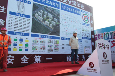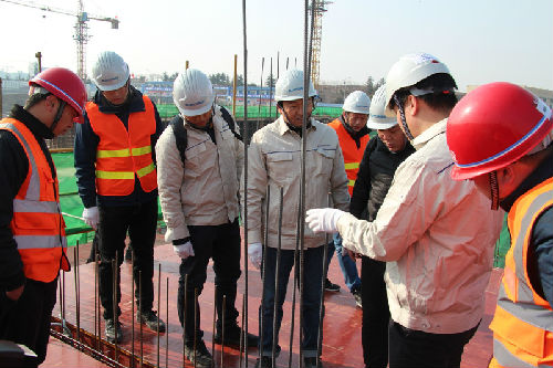 藍(lán)城集團(tuán)及日本專(zhuān)家考察集團(tuán)青島公司施工現(xiàn)場(chǎng)