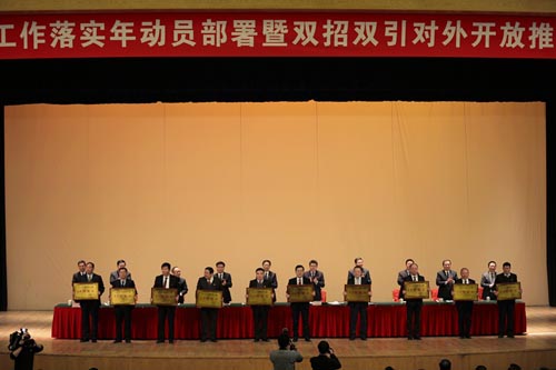 2019年2月12日上午,全市工作落實年動員部署暨雙招雙引對外開放推進會議在富華國際會議中心召開。 會上,市委書記惠新安作了重要講話,市委副書記、市長田慶盈主持會議。 市委、市人大常委會、市政府、市政協(xié)領(lǐng)導(dǎo)班子成員,市中級法院院長、市檢察院檢察長;濰坊軍分區(qū)主要負(fù)責(zé)人;市人大常委會、市政府、市政協(xié)秘書長;市紀(jì)委市監(jiān)委班子成員,市委、市政府副秘書長;市各民主黨派主要負(fù)責(zé)人;各縣市區(qū)、市屬各開發(fā)區(qū)黨政主要負(fù)責(zé)人,黨(工)委辦公室主任、組織部部長(政工部主任),發(fā)改、商務(wù)、招商部門主要負(fù)責(zé)人;市直各部門、單位和上屬駐濰單位主要負(fù)責(zé)人,市直有關(guān)部門領(lǐng)導(dǎo)班子成員;市人大、市政協(xié)各專門委員會和機關(guān)部門主要負(fù)責(zé)人;市委各巡察組組長和市紀(jì)委、市監(jiān)委各派駐機構(gòu)主要負(fù)責(zé)人;省級開發(fā)區(qū)主要負(fù)責(zé)人;有關(guān)重點企業(yè)主要負(fù)責(zé)人等參加會議。 會上,市委、市政府通報表彰了2018年度先進單位和個人,昌大集團與濰柴等企業(yè)榮獲“全市財稅貢獻50強企業(yè)”榮譽,董事長徐鵬強出席會議并代表集團受獎。