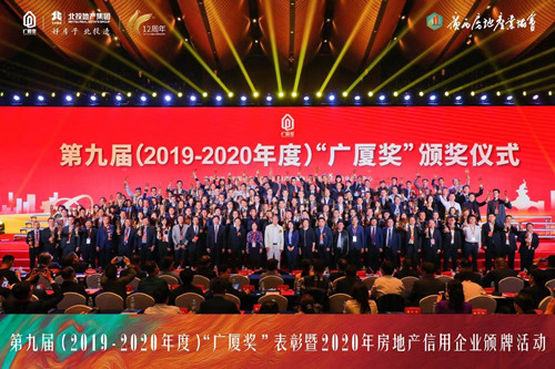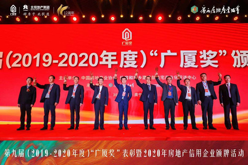 2021年4月8日,由中國房地產(chǎn)業(yè)協(xié)會(huì)、住房和城鄉(xiāng)建設(shè)部住宅產(chǎn)業(yè)化促進(jìn)中心共同主辦的第九屆(2019-2020年度)“廣廈獎(jiǎng)”表彰暨2020年房地產(chǎn)信用企業(yè)頒牌活動(dòng)在廣西南寧隆重舉行。由集團(tuán)匠心筑造的泰和上筑北區(qū)項(xiàng)目獲得的“廣廈獎(jiǎng)”獎(jiǎng)杯由此領(lǐng)回。這是集團(tuán)又一次榮獲房地產(chǎn)業(yè)的最高獎(jiǎng)“廣廈獎(jiǎng)”。廣廈獎(jiǎng),有著“房地產(chǎn)界奧斯卡獎(jiǎng)”的美譽(yù)。作為國家房地產(chǎn)行業(yè)最權(quán)威的綜合性獎(jiǎng)項(xiàng),每兩年評(píng)選一次,與建筑領(lǐng)域“魯班獎(jiǎng)”、設(shè)計(jì)領(lǐng)域“梁思成獎(jiǎng)”齊名,代表著中國房地產(chǎn)綜合開發(fā)水平的最高榮譽(yù)。據(jù)悉,獲獎(jiǎng)項(xiàng)目必須是規(guī)劃設(shè)計(jì)水平高、環(huán)境好、質(zhì)量優(yōu)、性能好,在推進(jìn)建筑工業(yè)化、綠色低碳和解決群眾住房問題方面能起示范、帶動(dòng)作用,其申報(bào)和評(píng)定有著嚴(yán)格的程序和標(biāo)準(zhǔn)。
