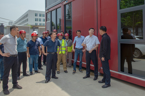 2021年6月30日上午,濰坊市副市長田民利到集團(tuán)寶通街快速路項(xiàng)目指揮部調(diào)研指導(dǎo)。在指揮部,田民利通過實(shí)時畫面觀看工程情況,對集團(tuán)目前施工情況給予充分肯定,對項(xiàng)目隔音屏制作材料、制作工藝、價格等進(jìn)行了詳細(xì)調(diào)研并提出了要求。期間還參觀了集團(tuán)設(shè)在指揮部的黨校,對集團(tuán)把支部建在項(xiàng)目上強(qiáng)化黨建引領(lǐng)舉措給予贊揚(yáng)。濰坊市寶通街快速路指揮部辦公室常務(wù)副主任田太卿,濰坊市城市建設(shè)發(fā)展投資集團(tuán)有限公司副總經(jīng)理、工程總監(jiān)侯繼軍等陪同參加活動。集團(tuán)董事長徐鵬強(qiáng)、總工程師兼集團(tuán)寶通街項(xiàng)目現(xiàn)場總指揮房海全程陪同并匯報有關(guān)工程情況。