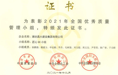 由集團(tuán)機(jī)施公司匠心QC小組編寫的成果《施工升降機(jī)新型電纜臂架的研制》,經(jīng)初賽、復(fù)賽和決賽,在榮獲特等獎(jiǎng)后被推薦至中國(guó)質(zhì)量協(xié)會(huì)代表建筑行業(yè)作進(jìn)一步的競(jìng)賽交流,該匠心QC小組也被中國(guó)質(zhì)量協(xié)會(huì)、中華全國(guó)總工會(huì)、中華全國(guó)婦女聯(lián)合會(huì)評(píng)選為2021年全國(guó)優(yōu)秀質(zhì)量管理小組,代表了建筑行業(yè)質(zhì)量管理小組活動(dòng)的最高水平。