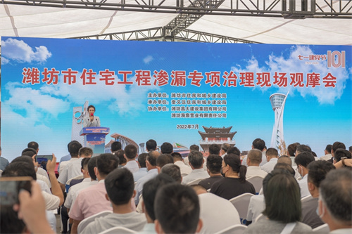 2022年7月1日上午,由濰坊市住建局組織的“濰坊市住宅工程滲漏專項(xiàng)治理”觀摩會(huì)在集團(tuán)二建公司總承包施工的海通恒信·鳶都名筑項(xiàng)目現(xiàn)場舉行。
