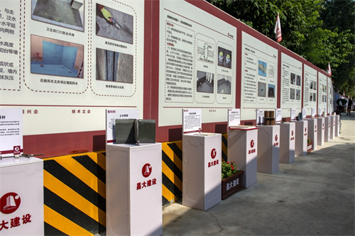 觀摩會(huì)現(xiàn)場,項(xiàng)目部人員結(jié)合現(xiàn)場樣板,對(duì)地下室、外墻、屋面及三小間防水做法和具體施工工藝向觀摩領(lǐng)導(dǎo)和嘉賓進(jìn)行了詳細(xì)講解。對(duì)于該項(xiàng)目的樣板做法,省住建廳和市級(jí)住建部門的領(lǐng)導(dǎo)與專家均給予了高度評(píng)價(jià),并已掛省廳網(wǎng)站全省云觀摩,同時(shí)在全市范圍推廣應(yīng)用。