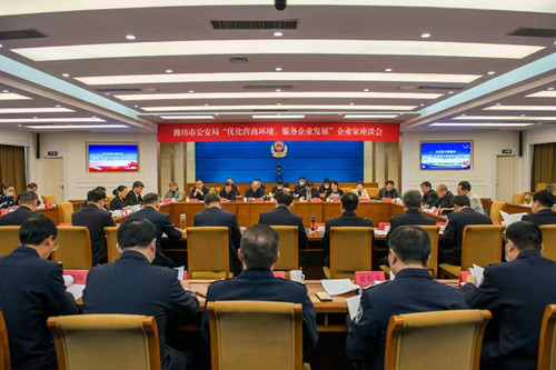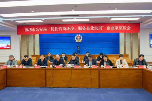 2023年3月22日下午,濰坊市公安局企業(yè)家座談會在市公安局北樓二樓電視電話會議室舉行。濰坊市副市長、市政府黨組成員、市公安局黨委書記、局長、督察長徐磊,濰坊市委統(tǒng)戰(zhàn)部副部長、濰坊市工商聯(lián)黨組書記徐鳳徽,濰坊市公安局在家領(lǐng)導(dǎo)班子,濰坊市各領(lǐng)域重點企業(yè)負(fù)責(zé)人,市公安局指揮中心、政治部等有關(guān)部門主要負(fù)責(zé)同志出席會議。會議通報了去年以來市公安機關(guān)有關(guān)工作情況,解讀近期市公安局出臺的服務(wù)企業(yè)相關(guān)文件,聽取了與會同志對公安機關(guān)服務(wù)企業(yè)的相關(guān)需求和意見建議,徐磊副市長講了話。會上,集團公司董事長徐鵬強對一直以來公安系統(tǒng)為企業(yè)發(fā)展?fàn)I造的良好環(huán)境表示感謝,對廣大公安干警落實治安防范措施、加大掃黑除惡力度;嚴(yán)厲打擊經(jīng)濟犯罪、挽回經(jīng)濟損失;交通運輸中的指導(dǎo)服務(wù);網(wǎng)警部門高效的輿情管控等諸項工作中的辛勤付出表示真誠謝意。并希望繼續(xù)加強警企共建,共同攜手抓穩(wěn)定、?保平安、促和諧,在全市拼經(jīng)濟、搞建設(shè)、抓發(fā)展中做出更大的貢獻。