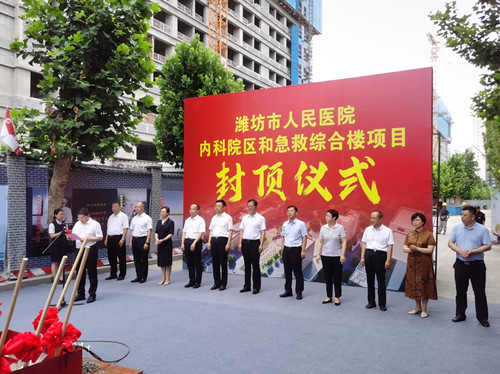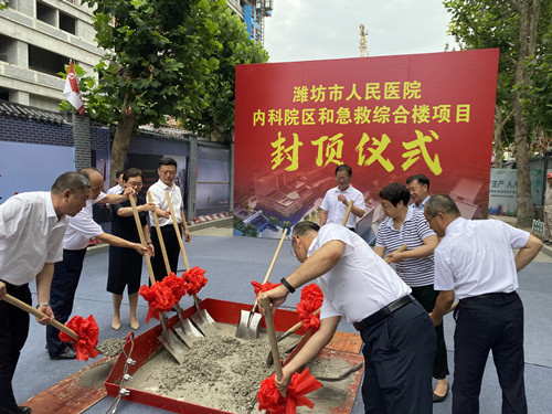 2023年7月25日上午10點18分,由集團四建公司、一建公司分別總承包施工的濰坊市人民醫(yī)院內(nèi)科院區(qū)項目、急救綜合樓項目封頂儀式在內(nèi)科院區(qū)項目現(xiàn)場隆重舉行。 濰坊市人民醫(yī)院黨委書記、院長蘇茂泉,副院長丁硯生等院方領導,集團公司董事長徐鵬強、總工程師房海、副總裁吳杰、王建波,濰坊天鵬建設監(jiān)理有限公司林少杰、濰坊信一項目管理有限公司 姜文玲、山東經(jīng)緯工程管理有限公司孟凡江、山東世紀華都工程咨詢有限公司劉玉龍等嘉賓出席儀式。 封頂儀式由丁硯生同志主持,蘇茂泉同志宣布“封頂”并與徐鵬強董事長及院方領導共同裝填封頂砼。 參加封頂儀式的還有:集團一建公司總經(jīng)理周光輝,裝飾幕墻公司總經(jīng)理付光文,安裝工程公司總經(jīng)理劉志偉,第二安裝工程公司總經(jīng)理賈德祥、黨支部書記盧啟東,第二裝飾幕墻公司黨支部書記陳鵬、四建公司副總經(jīng)理叢興杰、第三裝飾幕墻公司副總經(jīng)理徐志明以及項目建設、監(jiān)理、施工方面的員工代表等100余人。(信息來源:劉斌)