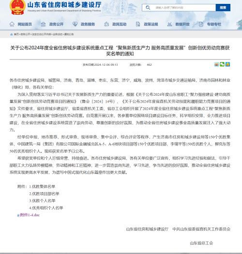 2024年12月6日,2024年度全省住房城鄉(xiāng)建設(shè)系統(tǒng)重點工程“聚焦新質(zhì)生產(chǎn)力服務(wù)高質(zhì)量發(fā)展”創(chuàng)新創(chuàng)優(yōu)勞動競賽獲獎名單公布,集團(tuán)公司榮獲優(yōu)勝集體稱號,四建公司的昌威綜合運營中心綜合運營樓項目部榮獲優(yōu)勝項目部,高春濤榮獲優(yōu)勝個人。